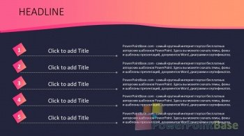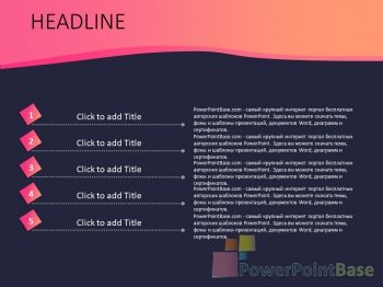 Стильный современный шаблон презентации PowerPoint. В шаблоне используются популярные элементы UX дизайна. Все фигуры можно изменить по форме и цветы. Шаблон полностью адаптивный под потребности пользователя.