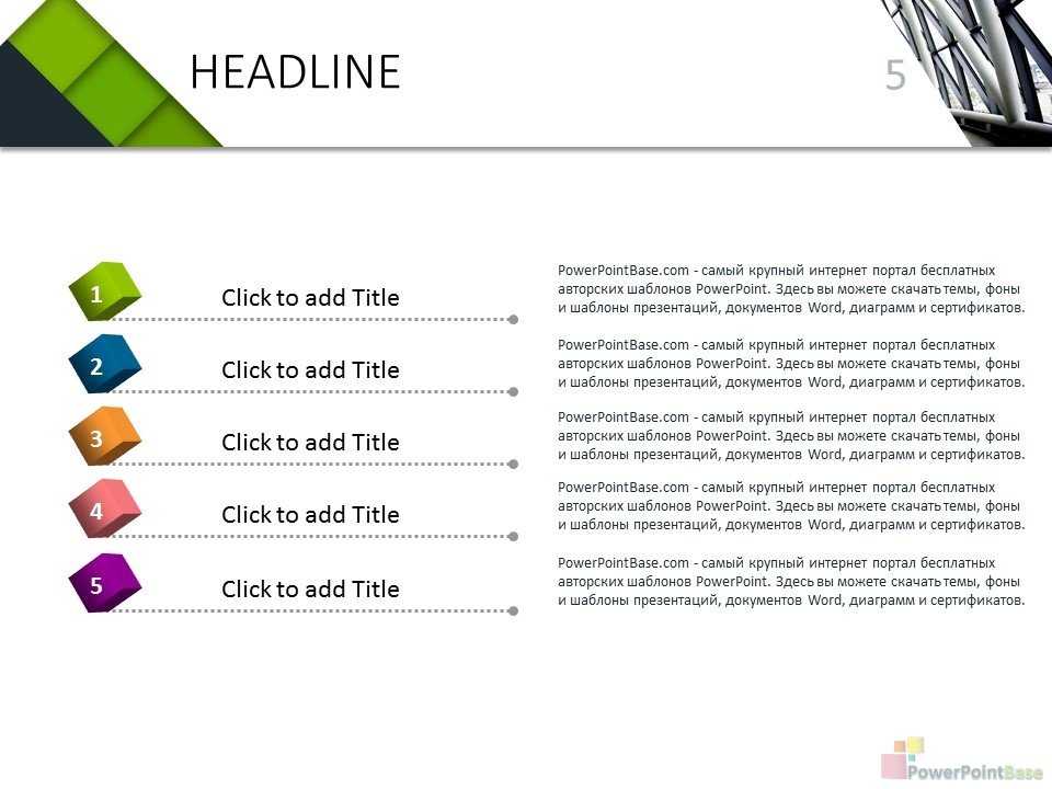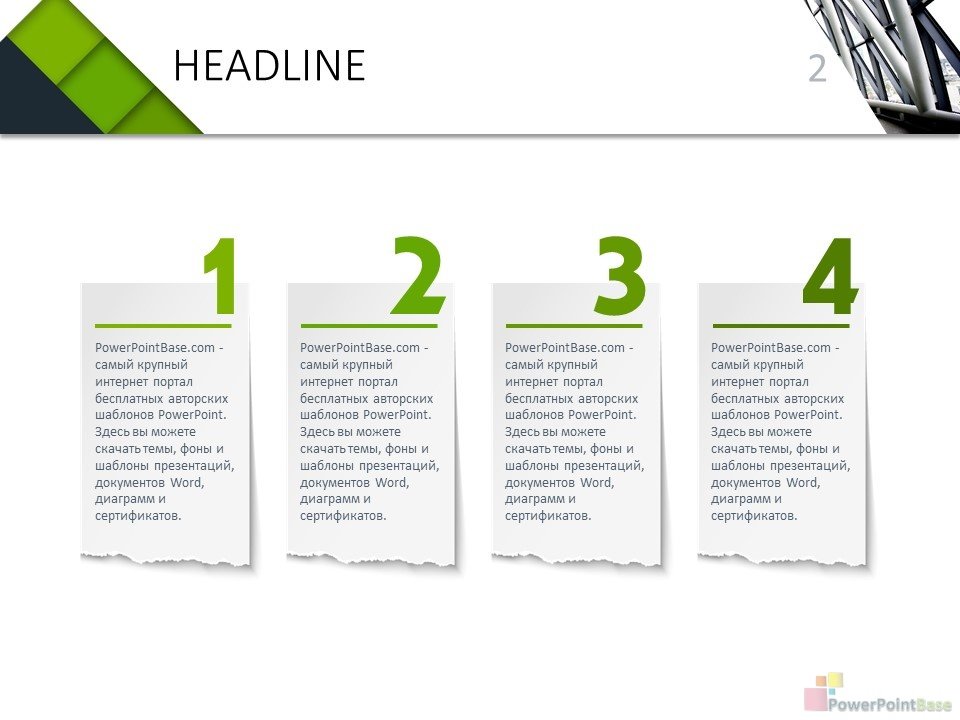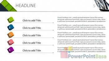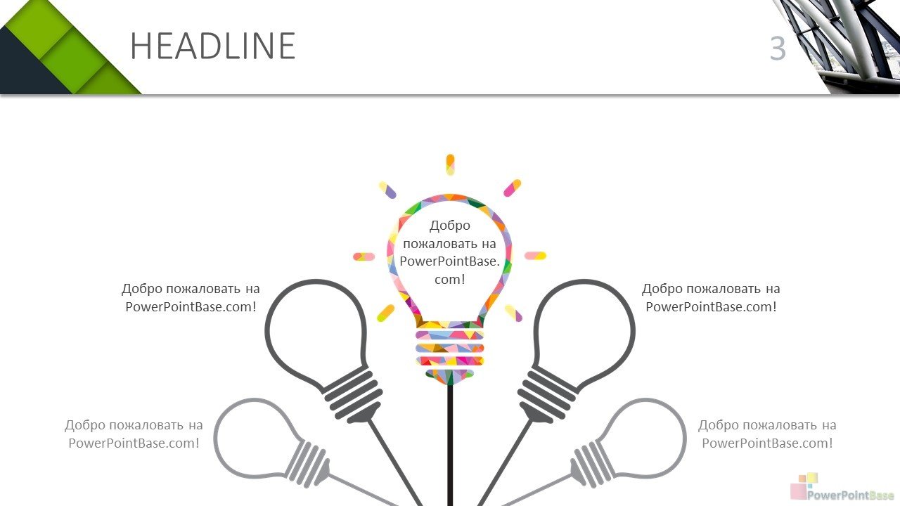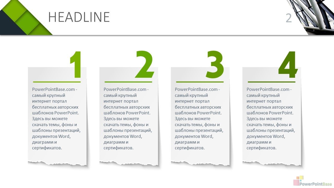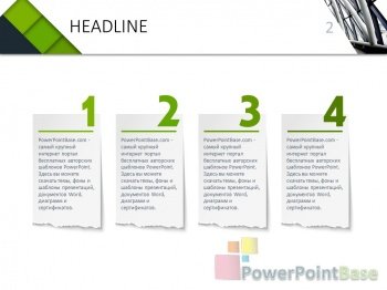 Представляем вашему вниманию авторский шаблон презентации PowerPoint. В шаблоне сочетаются белый, зеленый и темно-серый цвета. Он удобен в использовании и может бы легко дополнен необходимой графикой и текстом. В шаблоне вы можете заменить серую картинку на любую другую на ваш вкус. В стоимость входит шаблон презентации в двух размерах: широкоформатном (16 х 9) и классическом (4 х 3).