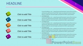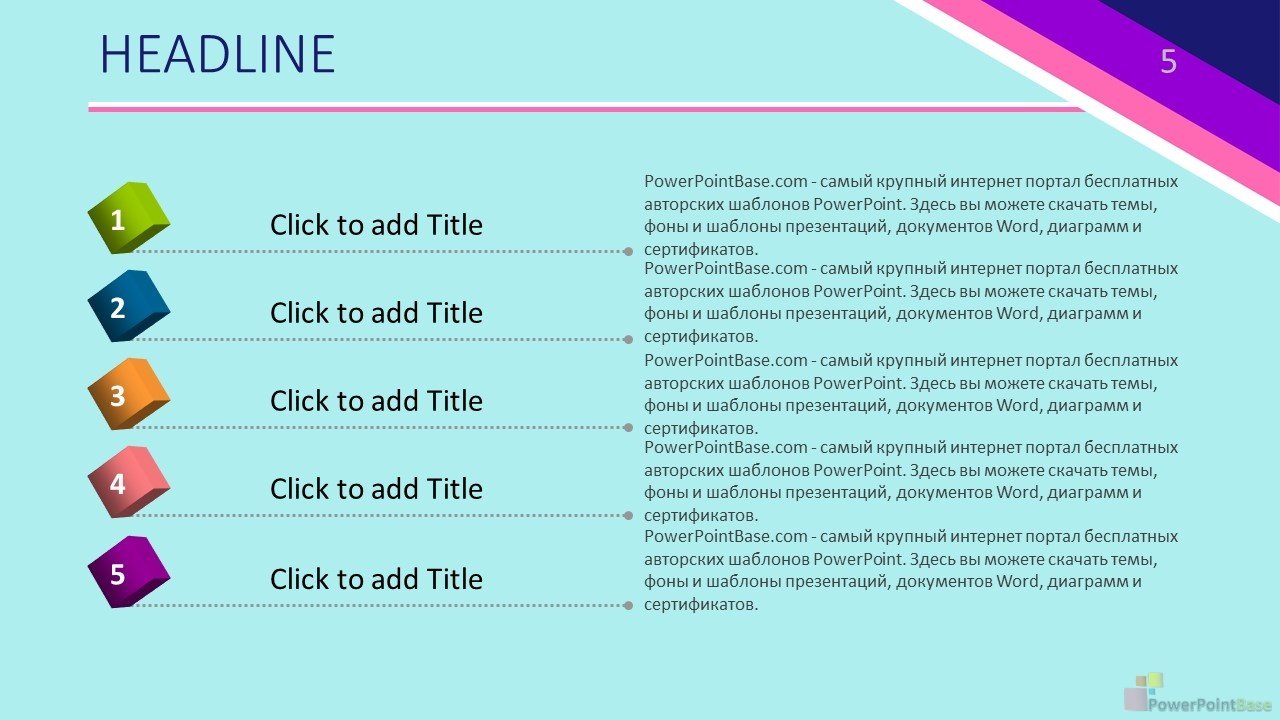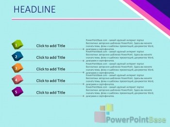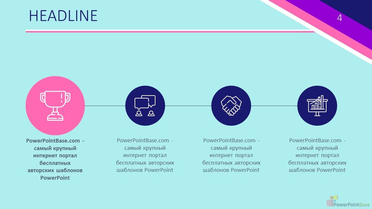Универсальный яркий шаблон презентации PowerPoint сочетает в себе контрасные цвета, что позволяет легко выбирать цвет фигур даже при показе презентации через проектро. Все элементы шаблона также легко изменяемы и настраиваемы. В стоимость входит шаблон презентации в двух размерах: широкоформатном (16 х 9) и классическом (4 х 3).