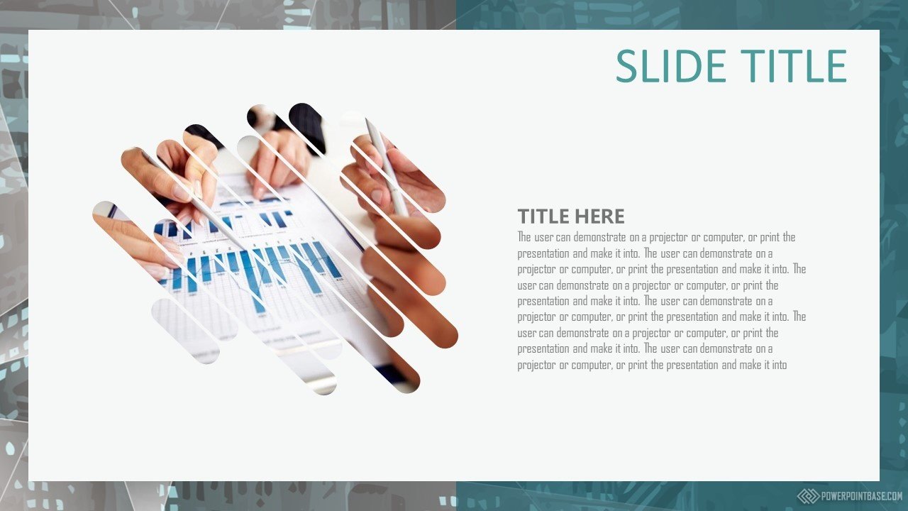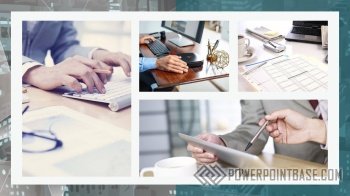 Уникальность этого шаблона в том, что в нем отлично сочетаются и строгие бизнес-элементы и творческие размытые рисованные фигуры. Благодаря этому тандему этот шаблон презентации PowerPoint выглядит и по деловому и креативно одновременно. При этом в шаблоне используются спокойные оттенки синего и серого, что добавляет ему выигрышных позиций при большом количестве слайдов.