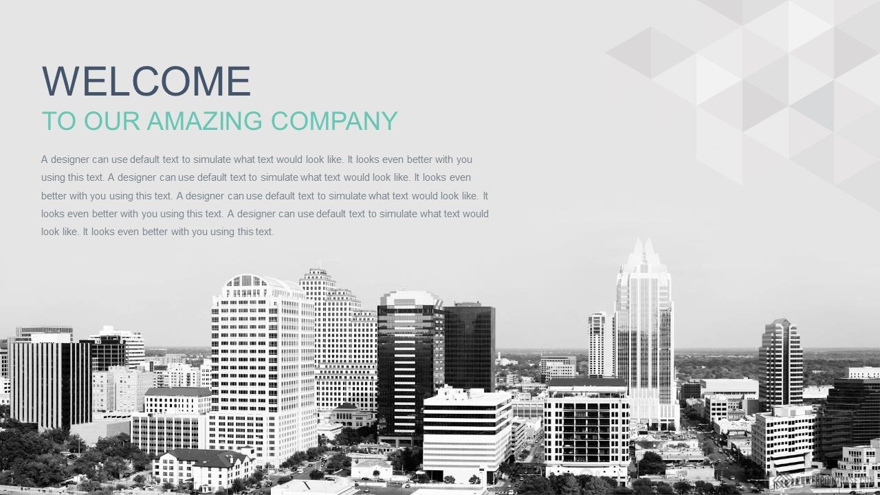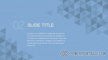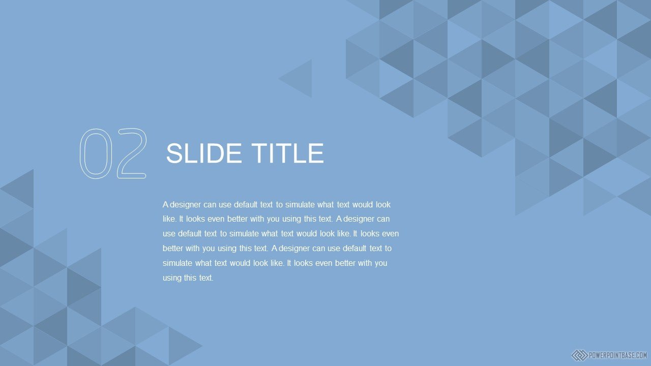 Много разных треугольников с оттенками синего в сумме дают потрясающий эффект мерцания. Данный шаблон презентаций 14 слайдов. Все элементы настраиваемые. Также в шаблоне уже настроена анимация обьектов и переходов между слайдами. Вам достаточно только добавить свои данные и стильная готовая презентация у вас в кармане.