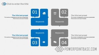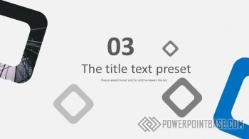 Современный стильный шаблон презентации с использованием квадрата с закругленными краями в качестве основного элемента декора. В шаблоне основных два цвета: серый и синий. Несмотря на свою минималистичность и строгость, шаблон универсальный и подойдет под любую тематику. В шаблоне уже настроена анимация объектов и переходов между слайдами.