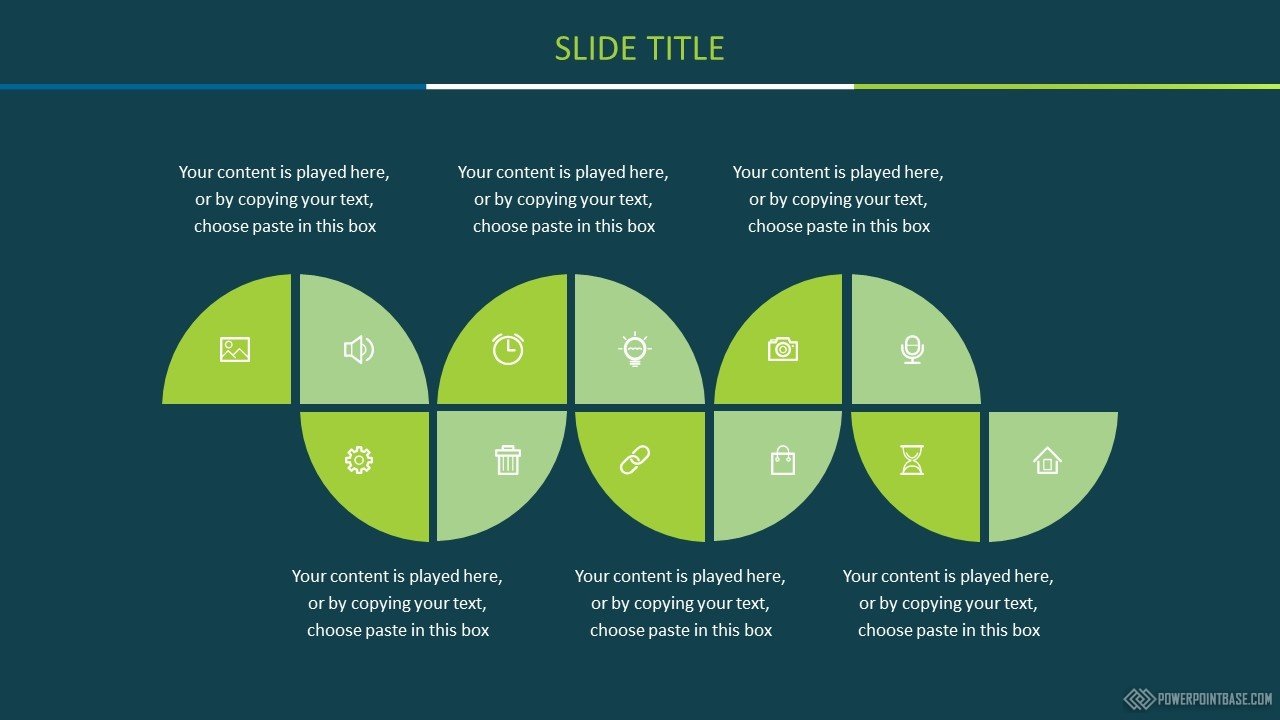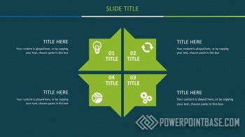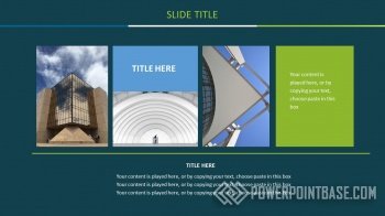 Не банальное сочетание приятных оттенков зеленого и синего создает замечательный стилистический эффект. Несмотря на темный фон, зеленые объекты на нем выглядят контрастными и четкими. В шаблоне также настроена анимация объектов и переходы между слайдами.