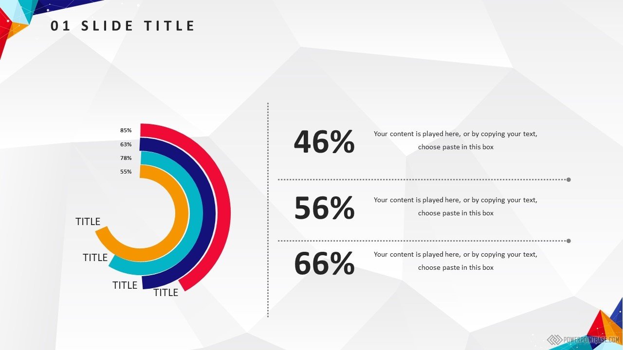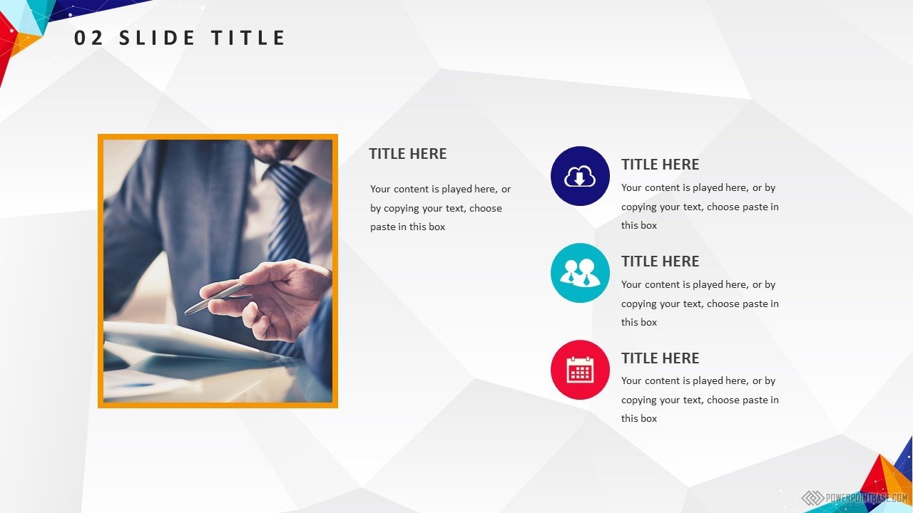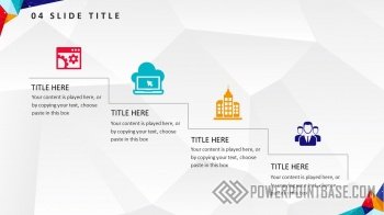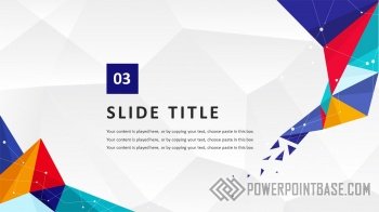 Яркий и стильный шаблон презентации выполнен с использованием различных полигональных фигур, которые все еще остаются в тренде. Обращаем внимание, что не все объекты можно менять. На слайдах уже настроена анимация объектов и переходы. Данный шаблон будет отлично смотреться как на мониторе, так и на проекторе.