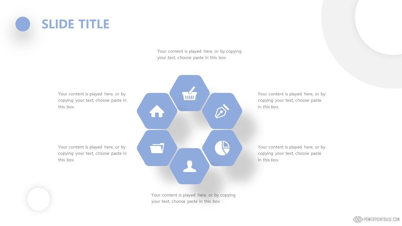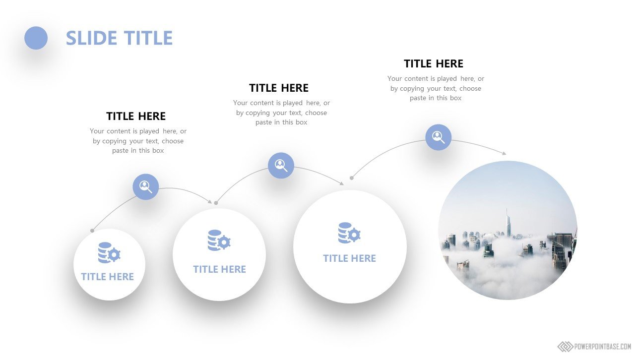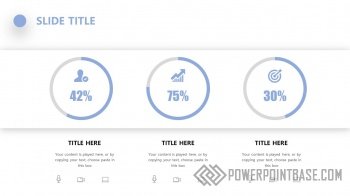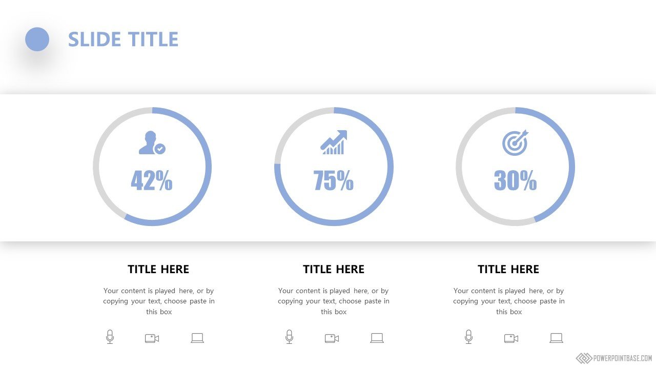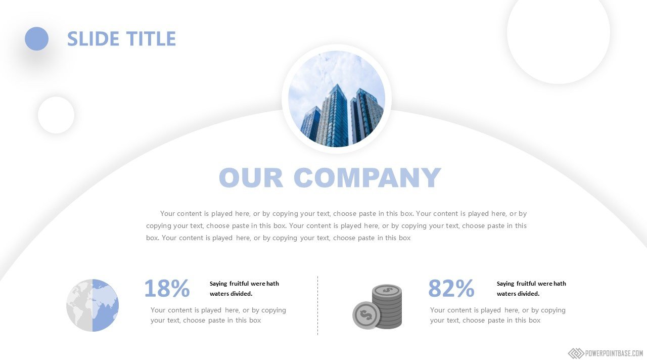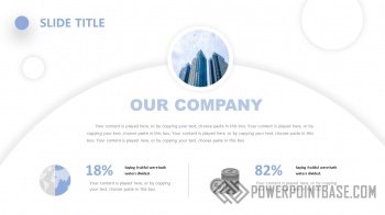 В данном шаблоне основной элемент - круг. Он присутствует на всех слайдах в разных проявлениях. Используются пастельные оттенки синего, что позволит зрителям максимально сконцентрироваться на информации. Все элементы редактируемые. Также на слайдах уже настроена анимация объектов и переходы.